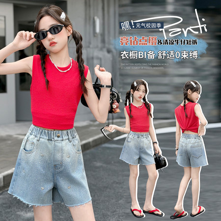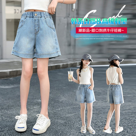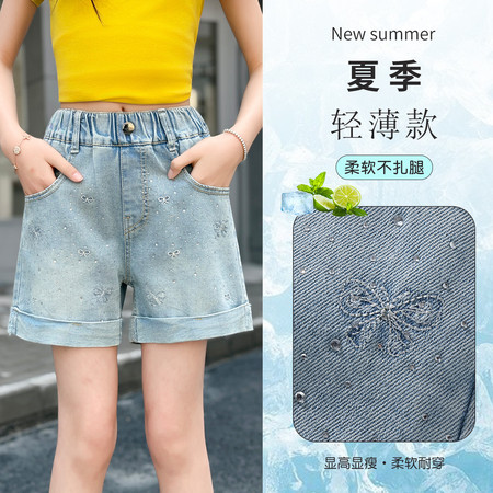 1*7下载视频“6632卷边弹力绣花水钻短裤”