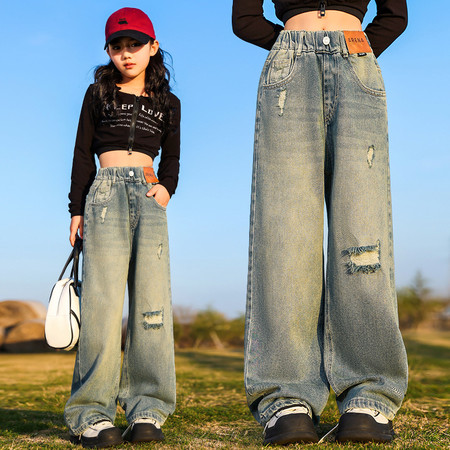 1*6下载视频“636破洞贴标阔腿裤子3”